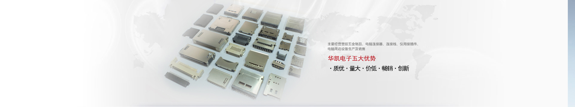 鄱陽縣華凱電子科技有限公司位于鄱陽縣城北工業(yè)園區(qū),成立于2008年06月,主要經(jīng)營塑膠五金制品、電腦連接器、連接線、儀用接插件、電腦周邊......
